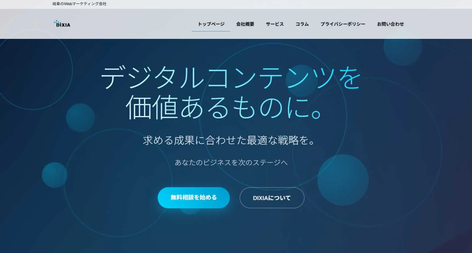 株式会社DIXIAは、岐阜市を拠点に、企業のオンライン集客やブランディングを支援するWebマーケティング会社です。