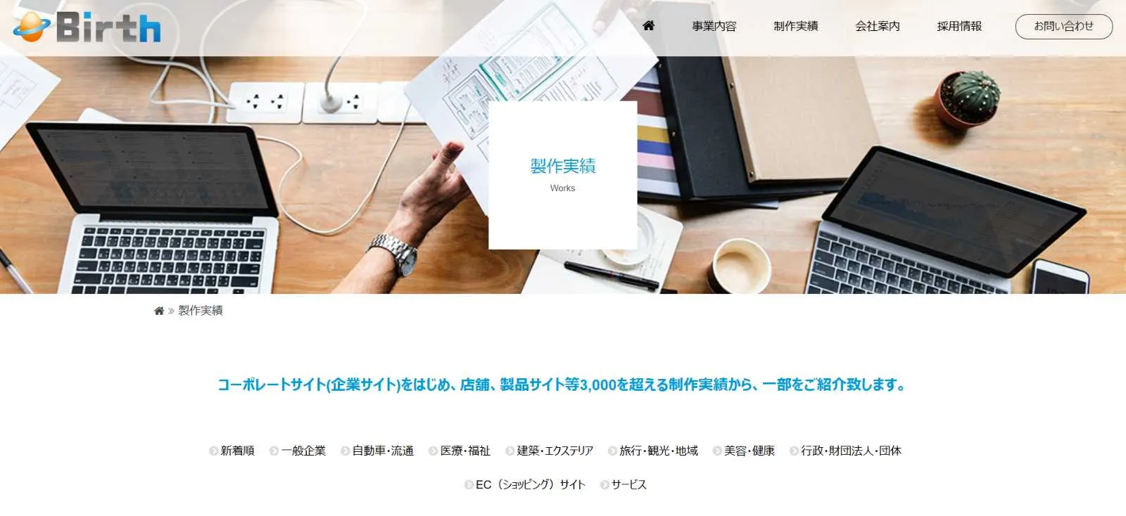 これまでに3,000件以上の実績があり、BtoB企業や製造業、建築・住宅、飲食店や小売店の店舗サイトなど幅広く対応可能です。ただし、大規模なシステム開発や特殊な業務要件には向いていません。そのため、Webや広告をまとめて任せたい企業に特におすすめです。