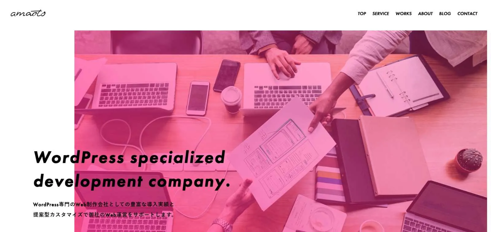株式会社AMAOTOは、三重県を拠点とするWordPress専門のホームページ制作会社です。デザイン性の高いWebサイト制作に定評があり、制作後の更新作業や運営サポートにも力を入れています。